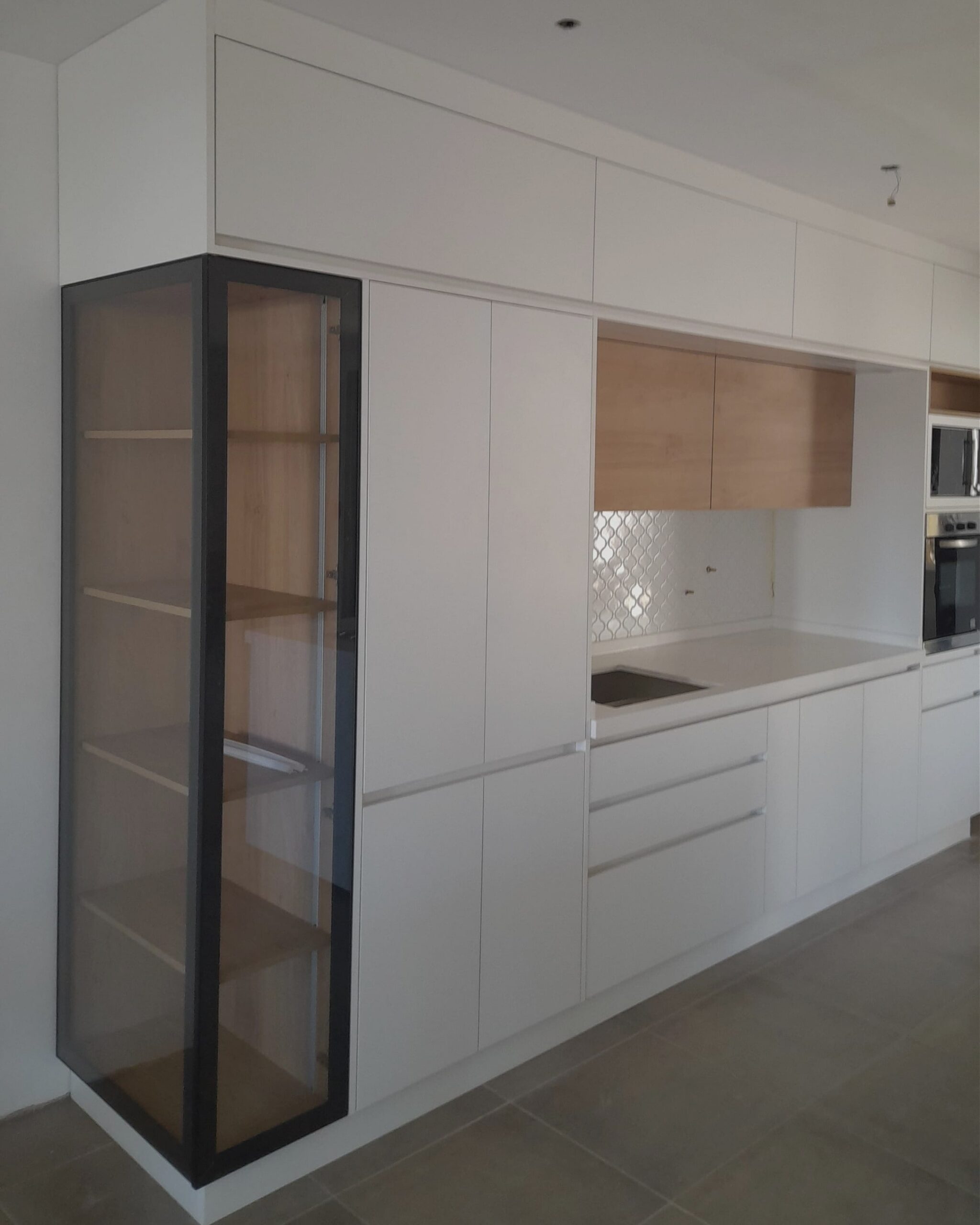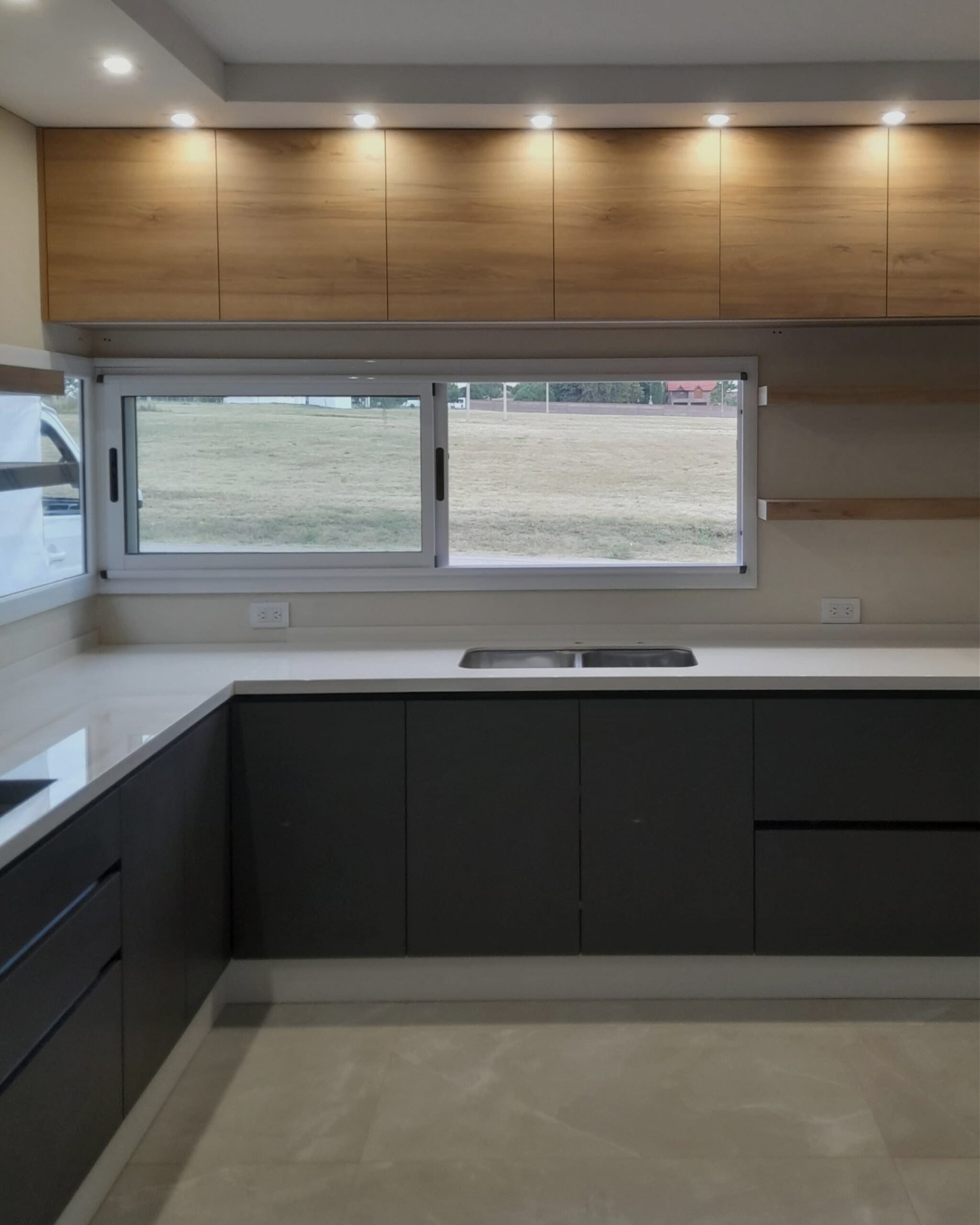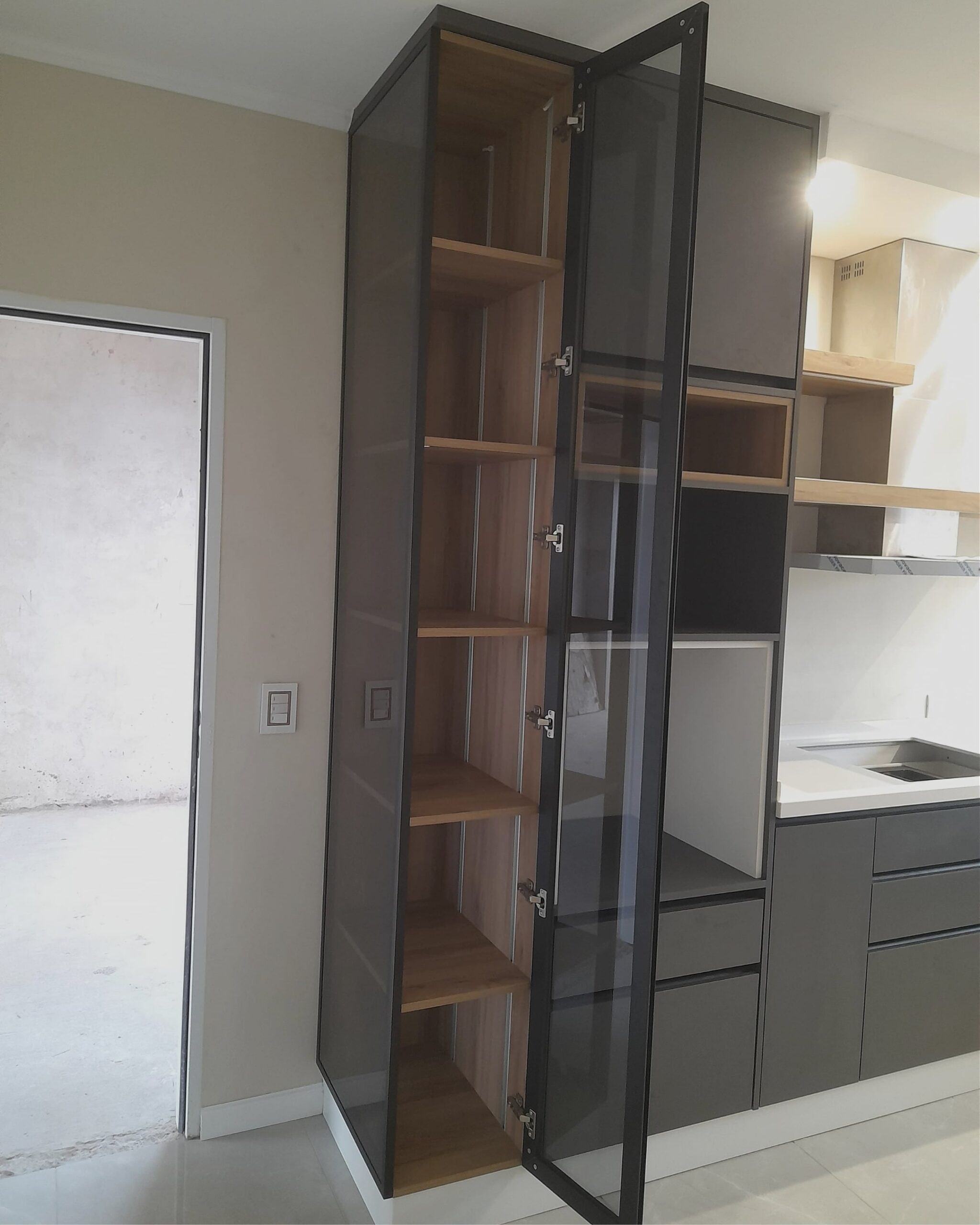 Con perfiles de aluminio y vidrios tonalizados. Ideal para darle un toque sofisticado y luminoso a la cocina o al espacio elegido.