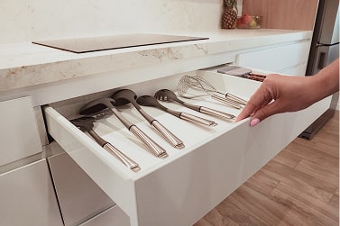 Optá por sistemas modernos de apertura, cierre suave, correderas y bisagras de alta calidad que marcan la diferencia.