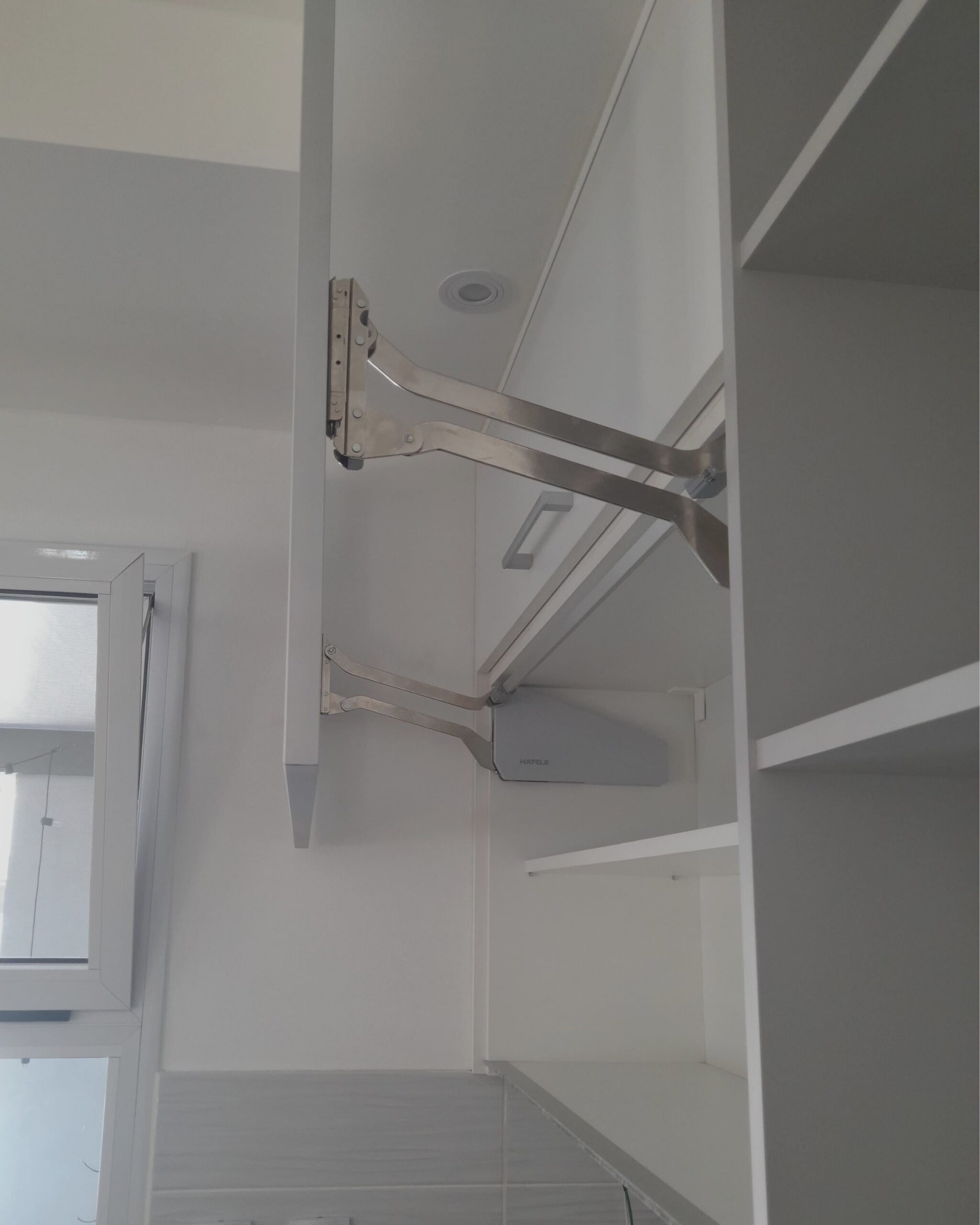 -Herrajes HAFELE: bisagras con cierre suave y pistones de elevación precisos para puertas abatibles.