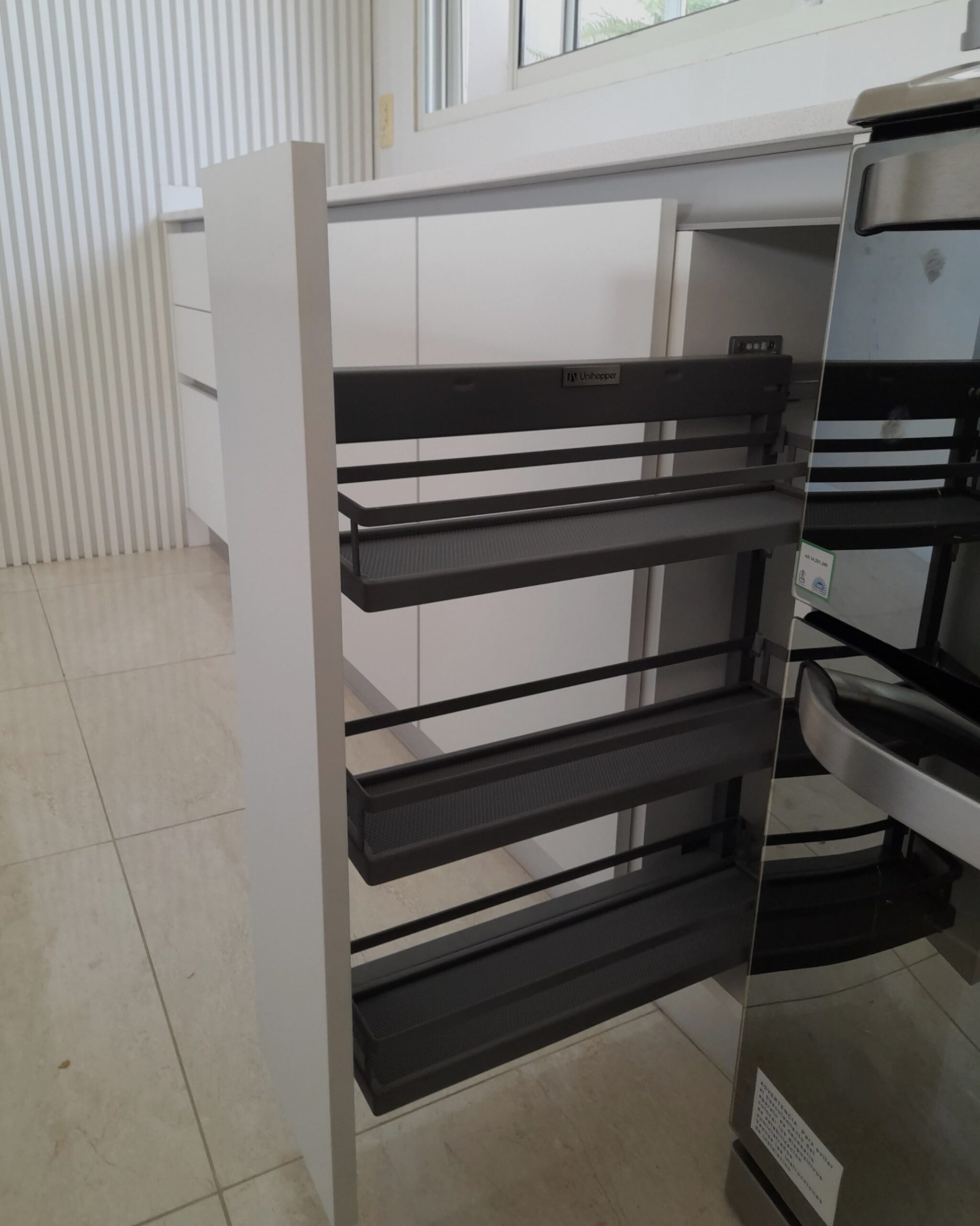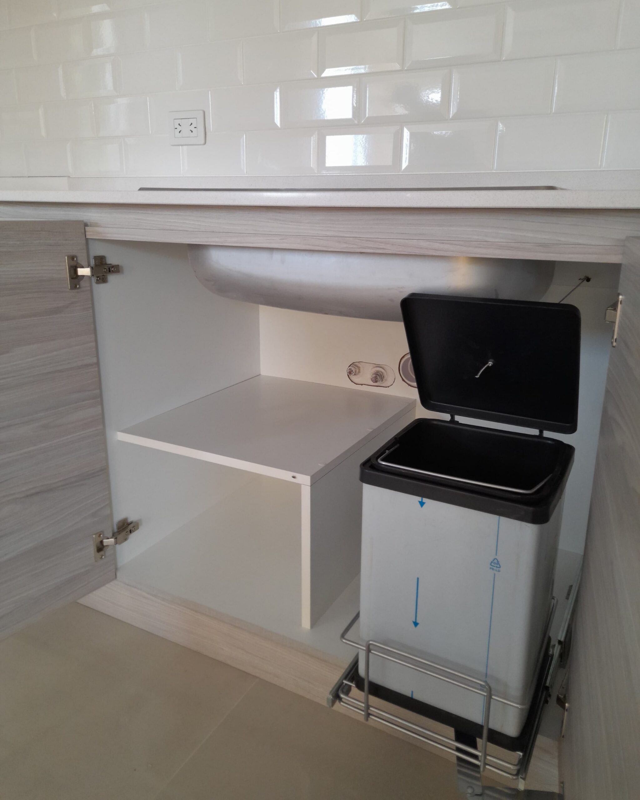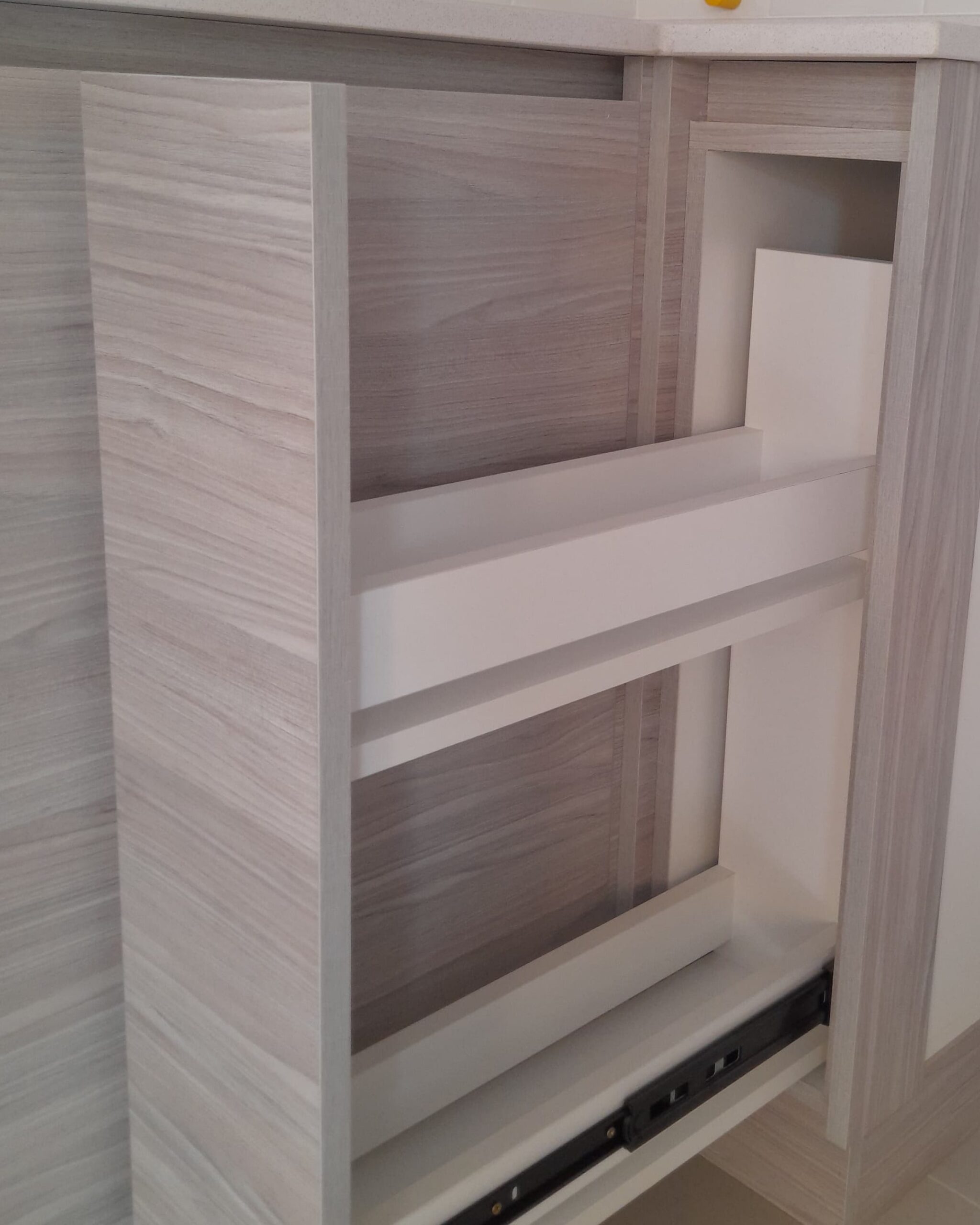 Ofrecemos una amplia variedad de accesorios que suman funcionalidad y orden a tu cocina: especieros, cestos de residuos extraíbles, bandejas deslizables, despenseros, módulos organizadores, y sistemas de iluminación LED embutida con sensores automáticos, ideales para alacenas y módulos vidriados.